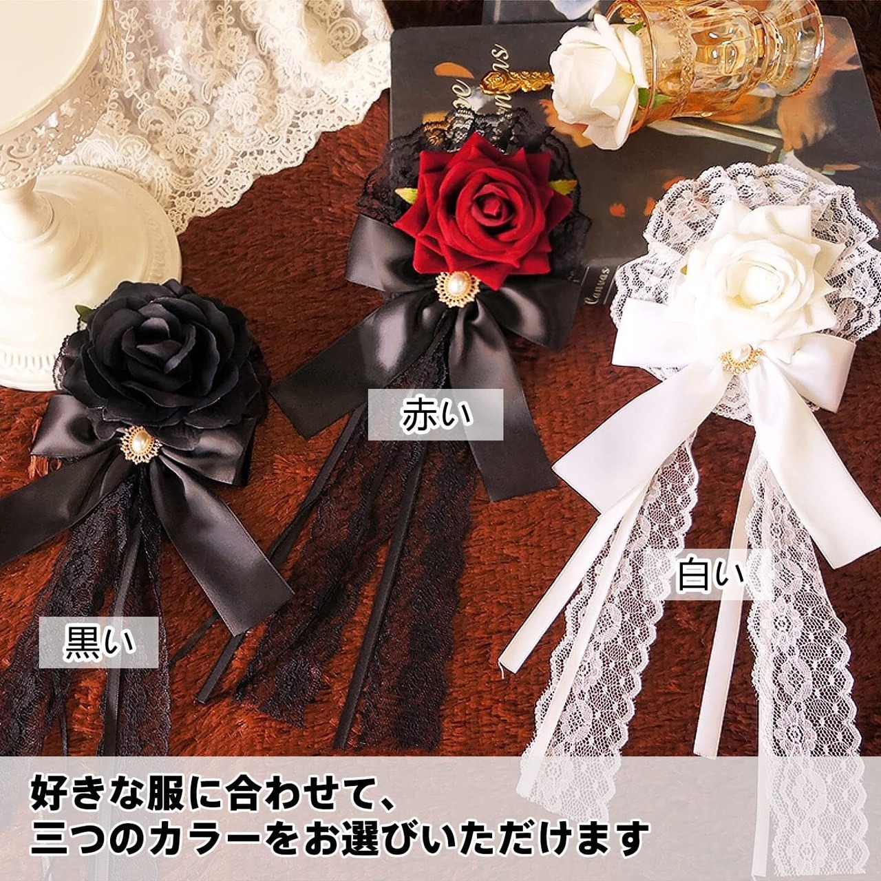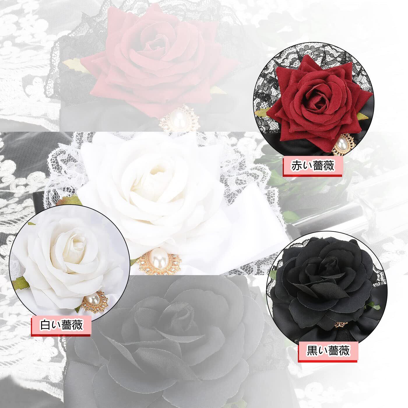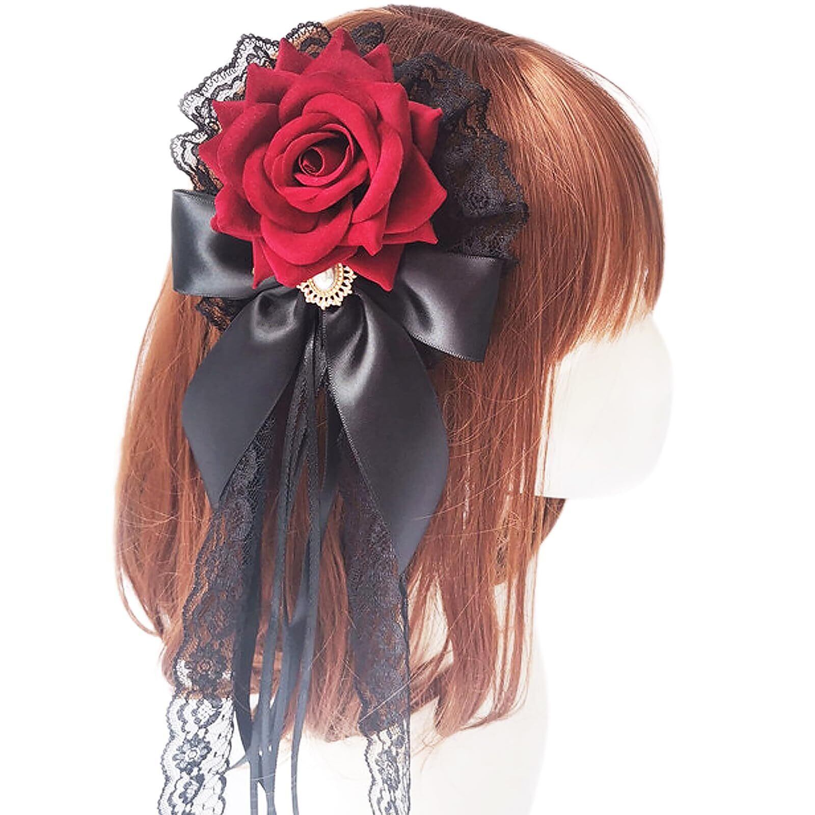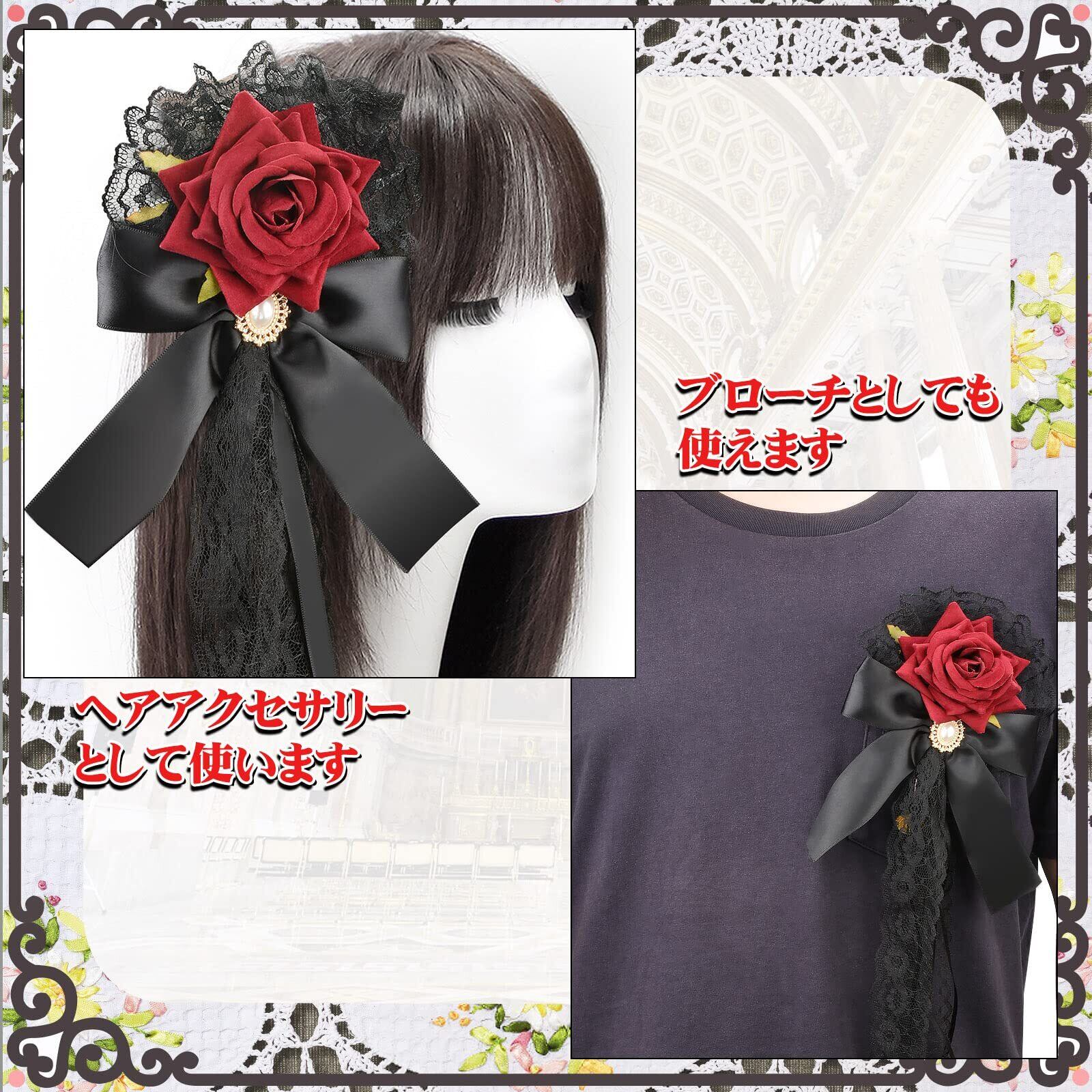 MM&UU ヘッドドレス ロリータ 薔薇 バラ ヘアアクセサリー ゴシック ゴスロリ 髪飾り クリップ ブローチ 2in1 披露宴 二次会 発表会 葬式 宴会 可愛い 母の日 ギフト 赤