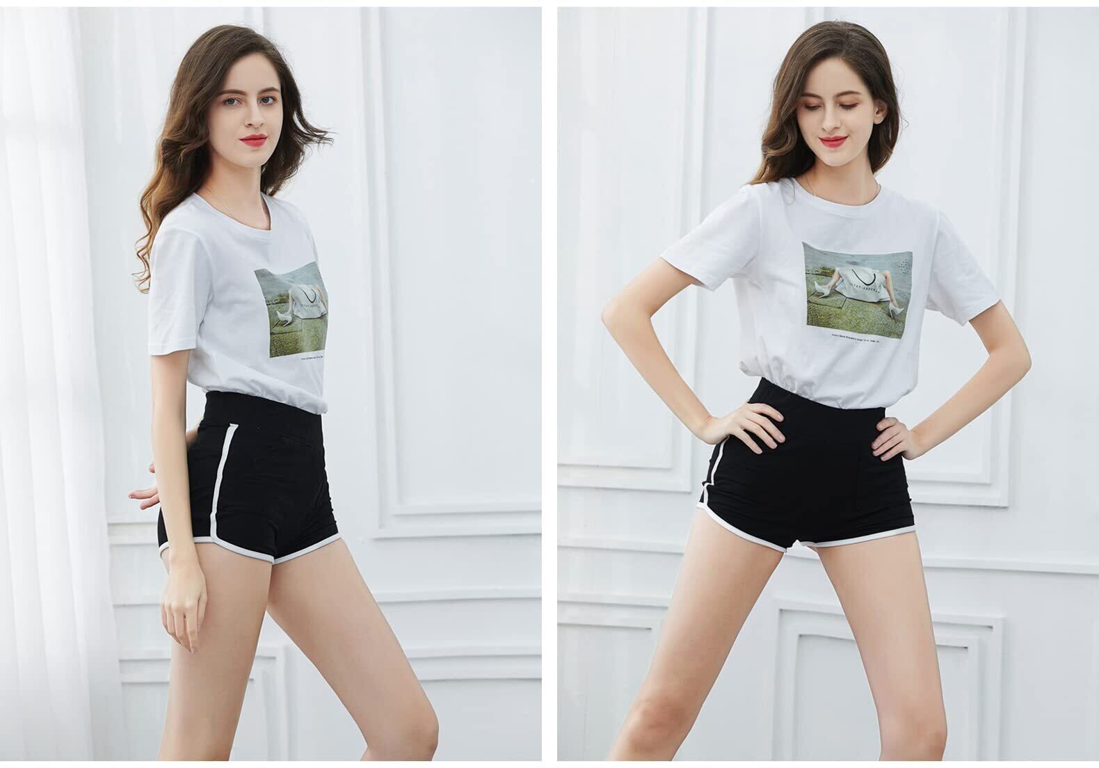 RAKUKOU レディース ショートパンツ 綿混 短パン スポーツ 夏 カジュアルウエア 柔らかい 通気性 伸縮性 吸汗 速乾 ヨガ ランニング ルームウェア