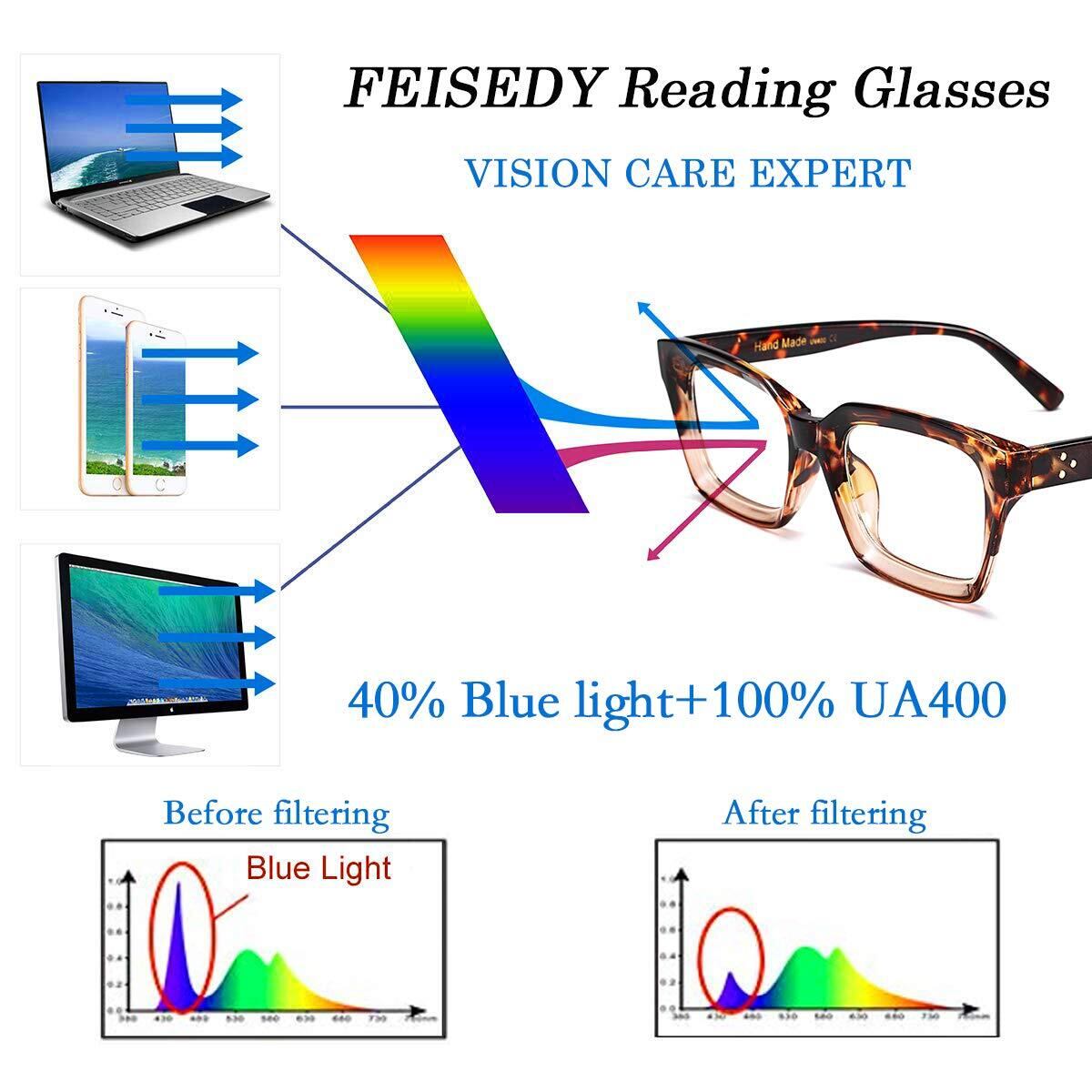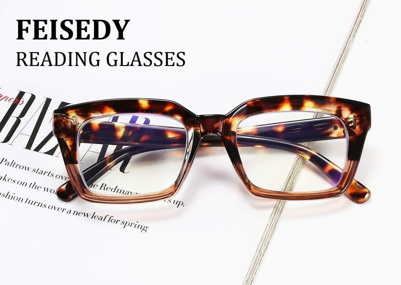 優れた素材:FEISEDY 軽量 ヴィンテージデザイン 太めのスクエアリムフレーム老眼鏡があなたをよりスタイリッシュに。 優れた品質の TR フレーム、完璧な質感、快適な着用感