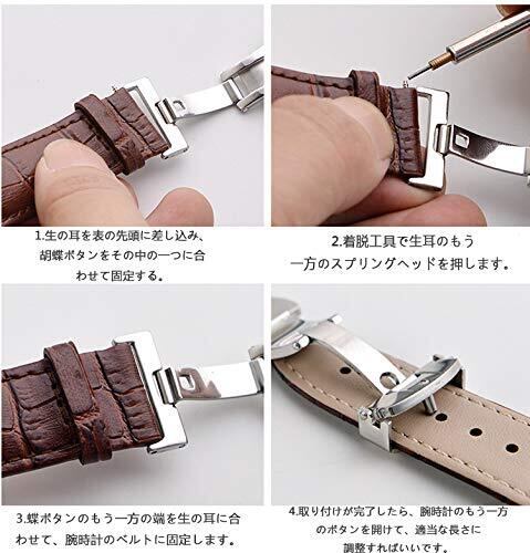 [PUTCENDI] Dバックル 尾錠 時計 ベルト 腕時計 バンド 10mm12mm 14mm 16mm 18mm 20mm 22cm 時計両開き/プッシュ式 スチール腕時計バンドプッシュ式 バタフライ バックル