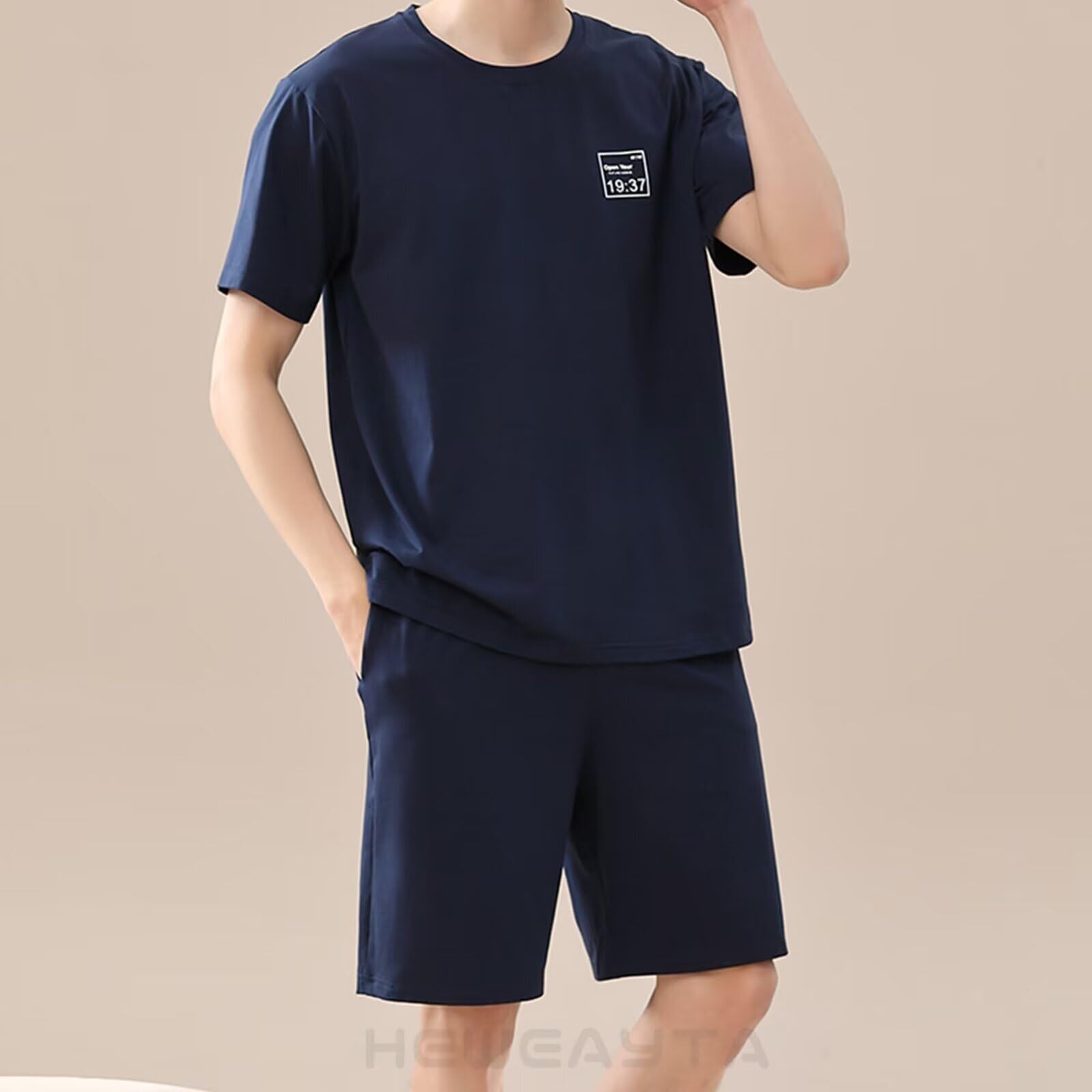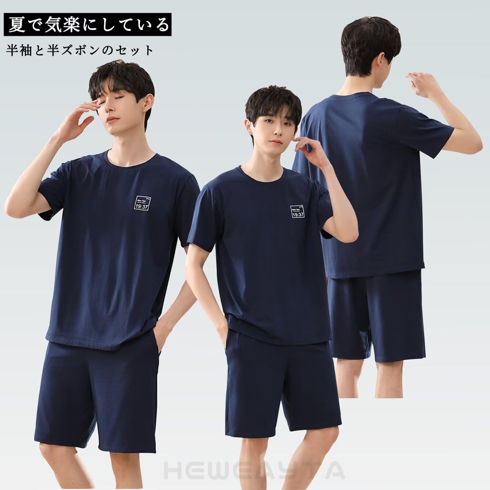 [HEWEAYTA] パジャマ メンズ 夏 半袖 - ルームウェア 上下セット 半袖ショートパンツ 部屋着 薄手 綿 軽い 吸汗