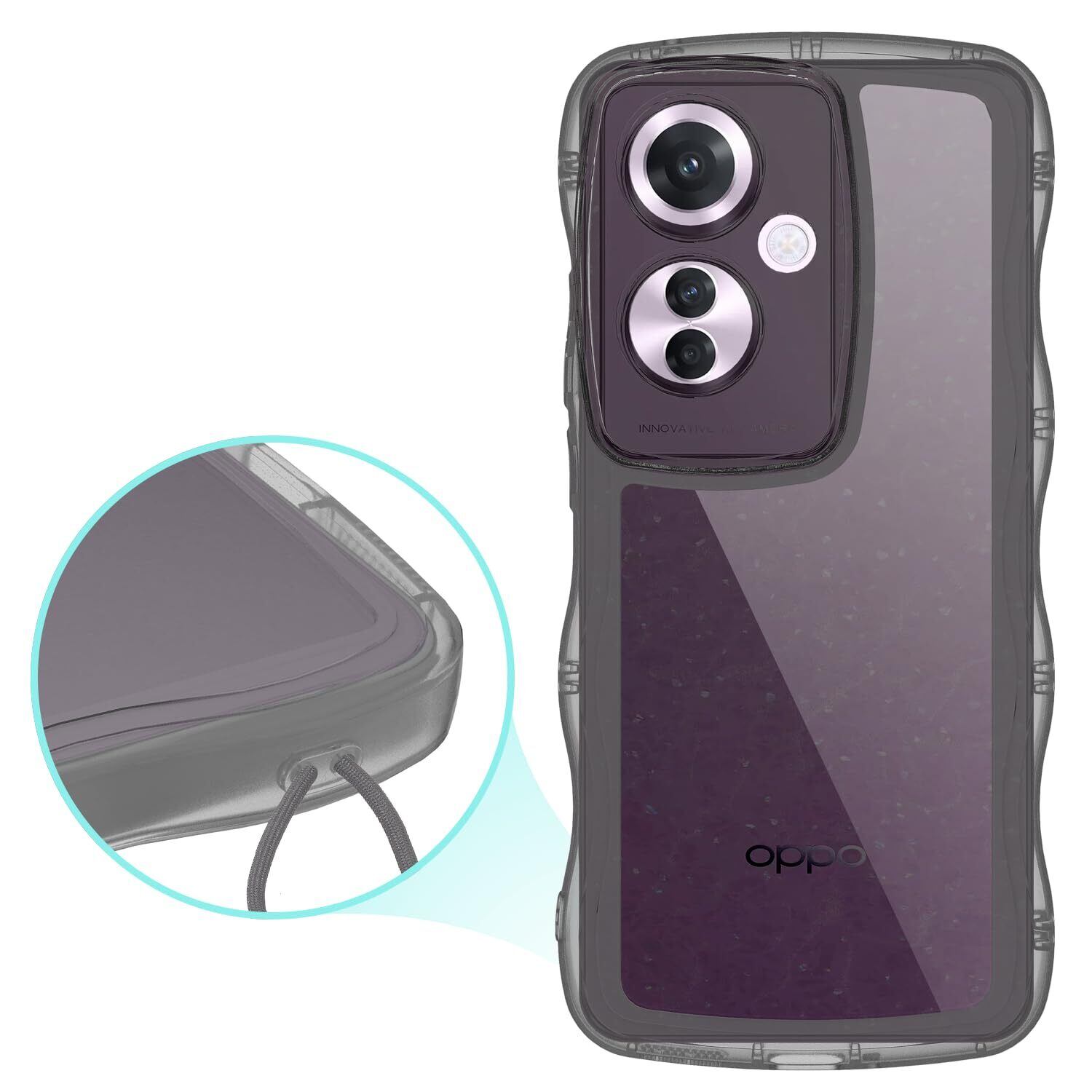 【Newnugds】OPPO Reno11 A ケース 韓国 おしゃれ シンプル 波状エッジ オッポ Reno11 A ソフト TPU うねうね 半透明 創意 超軽量 薄型 スマホケース 黄ばみなし 指紋防止 擦り傷防止 全面保護 オッポ Reno11 A ケース 衝撃吸収 ワイヤレス充電対応 ストラップホール付き オッポ Reno11 A ケース