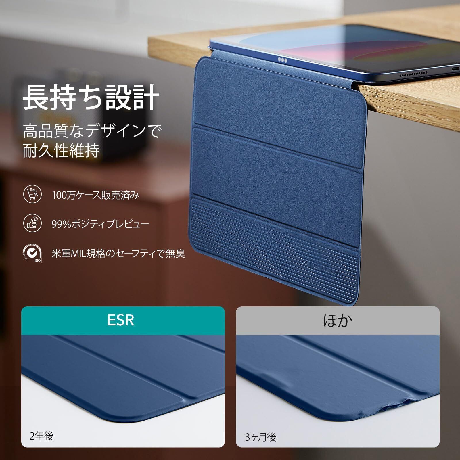 【数量限定】ESR iPad 11世代 ケース A16 (11インチ、2025モデル) iPad 第10世代 (10.9インチ、2022モデル)専用 強力マグネット吸着式 スリムな三つ折りスタンドケース 自動ウェイク/スリープ耐 久性保護 軽量 シルクのよう滑らか Reboundシリーズ ブルー