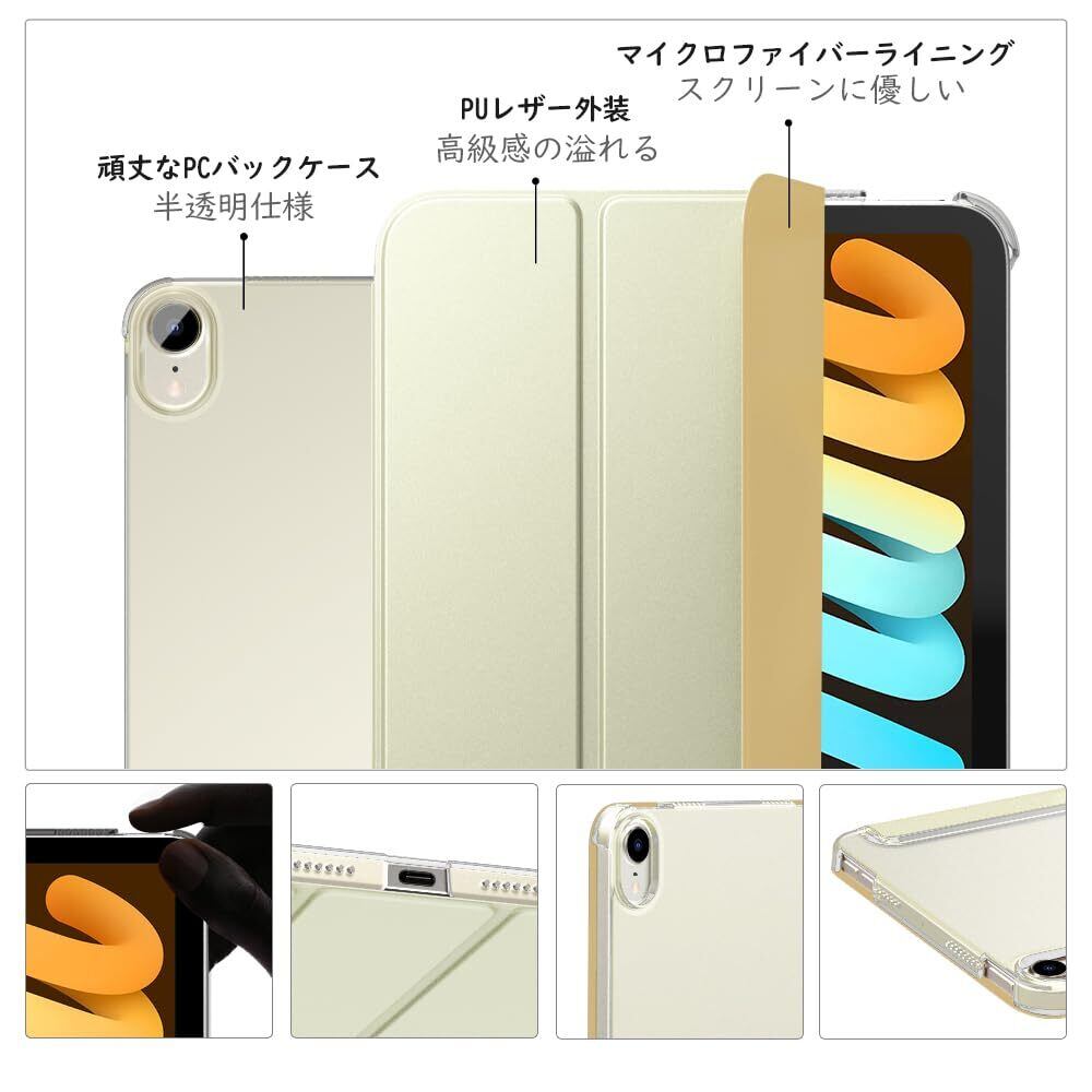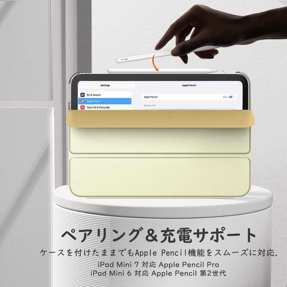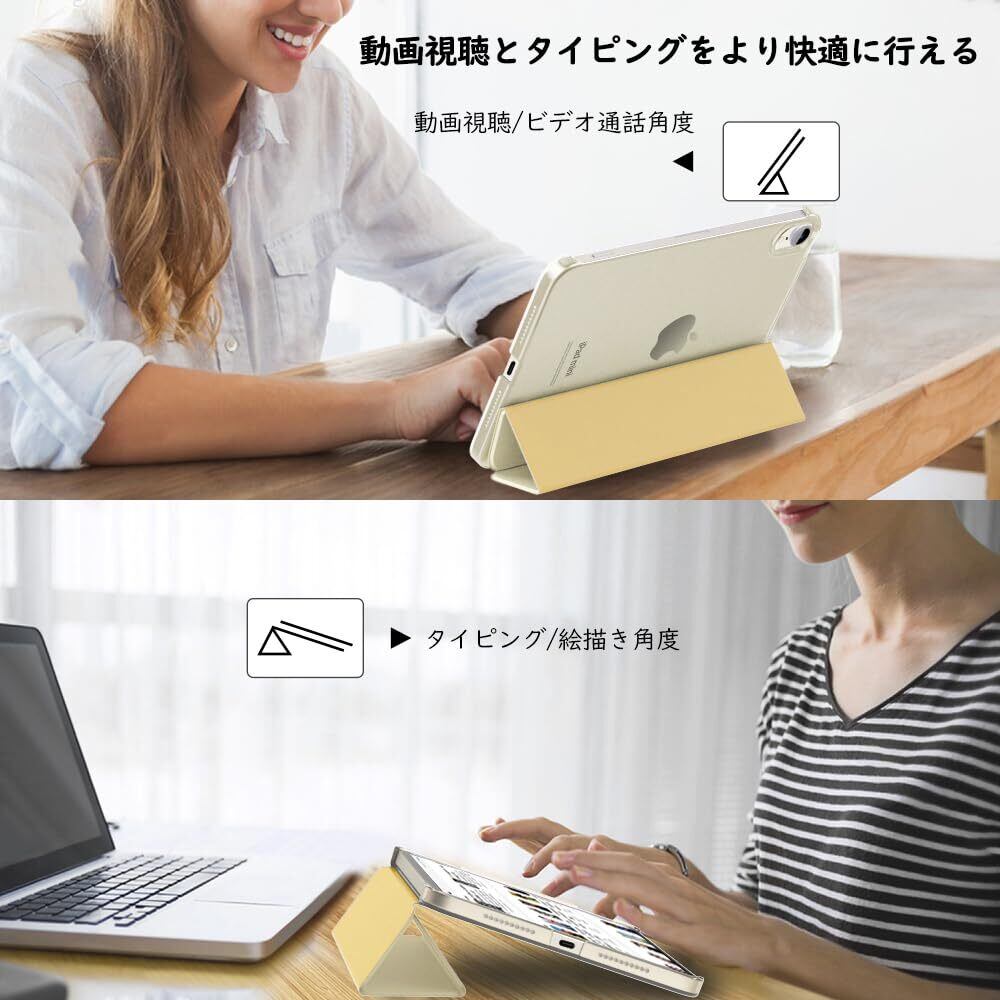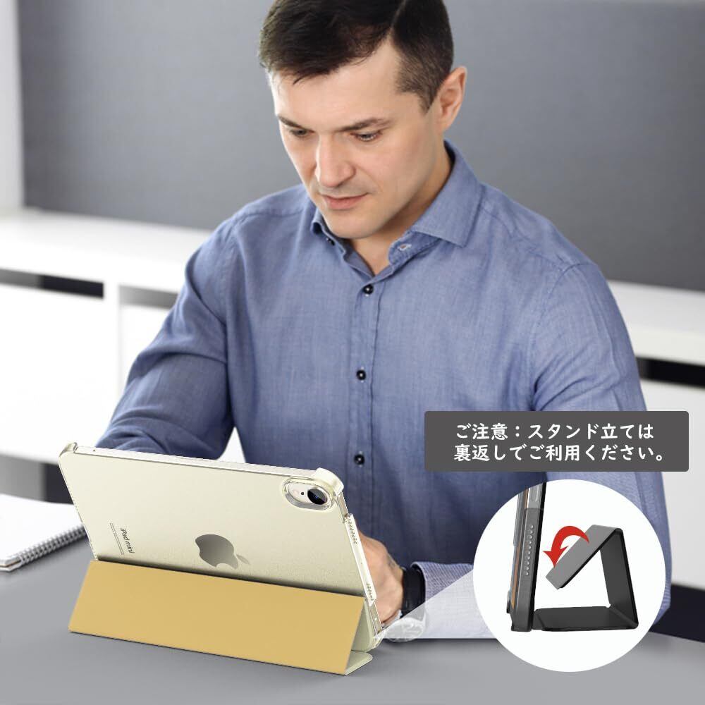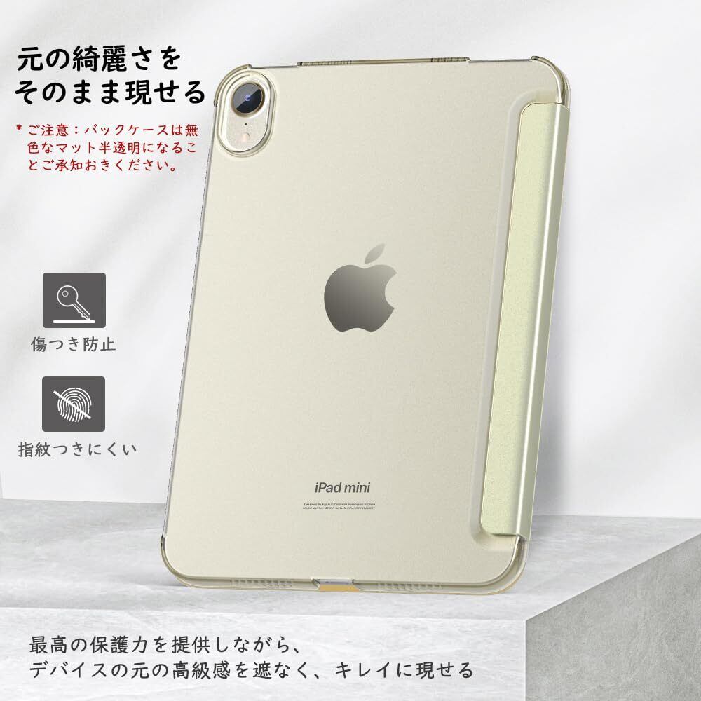 MoKo iPad mini7 ケース (A17 Pro、2024) / iPad mini 6 ケース iPad mini 第7/6世代 8.3インチ 2024/2021 半透明 オートスリープ機能 PencilPro/第2世代ワイヤレス充電に対応 三つ折りスタンド 高級PUレザー 裏地マイクロファイバー 軽量 薄型 傷防止 スマートケース ChampagneGold