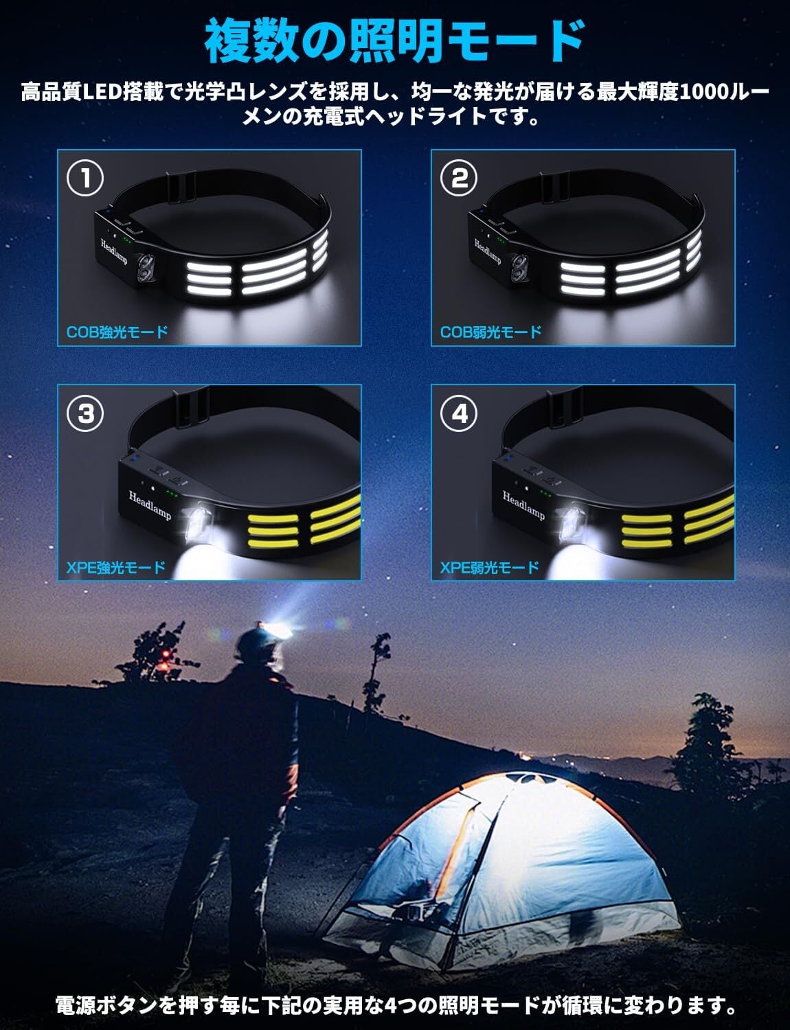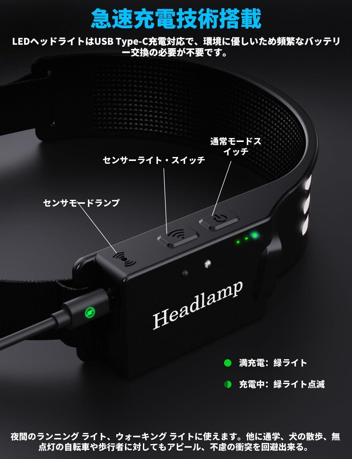 【安全性&2年間】また、1年間のメーカー付きますので、ご安心ください。パッケージ内容:ヘッドライト*1個、USB充電ケーブル*1個、取扱説明書。