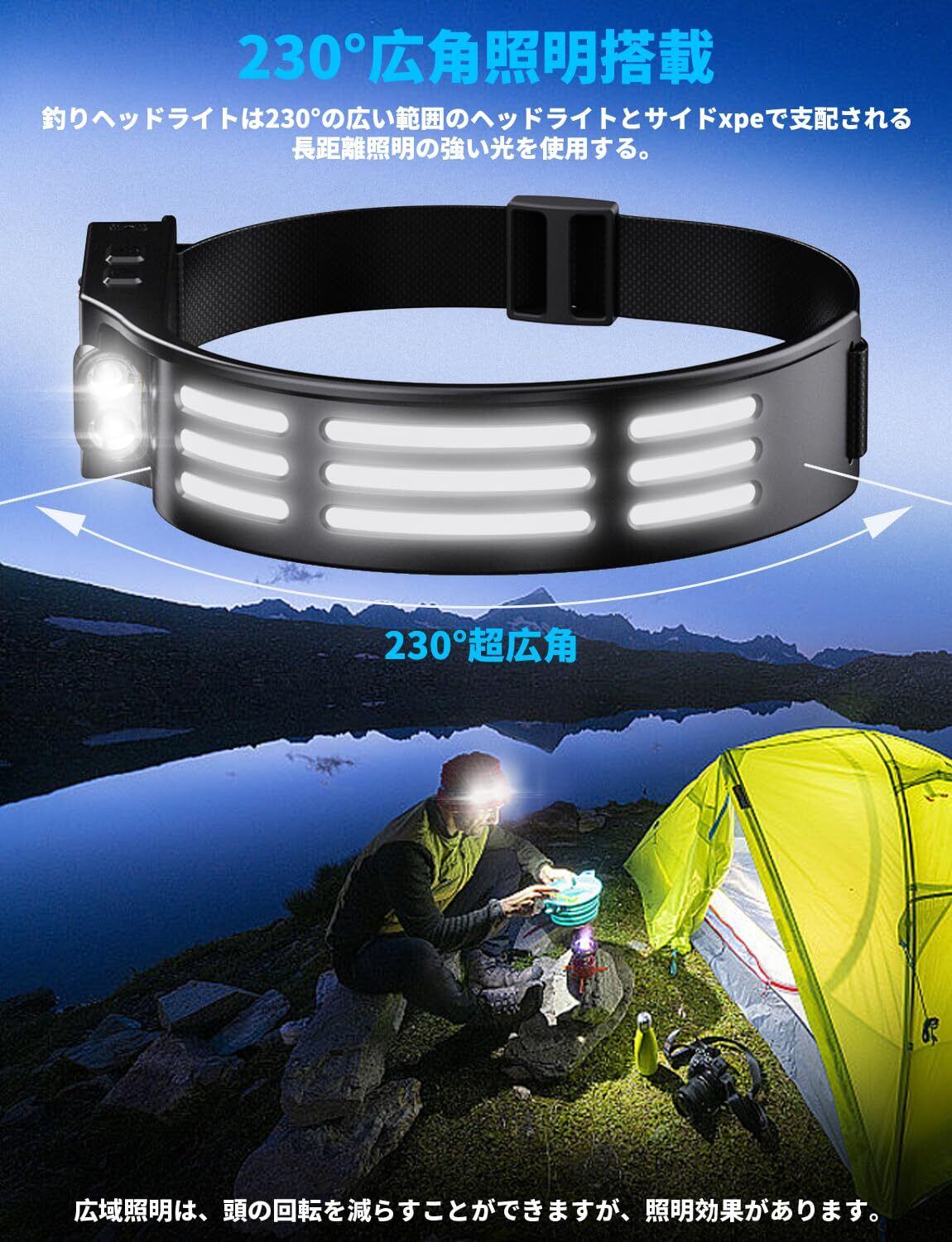 ヘッドライト Type-C充電式 大容量1800mAh 高輝度 LED 800ルーメン 手振りセンサー機能付き 4種点灯モード 赤&白ライト 頭につけ ヘッドランプ 防水防塵 夜釣り 最適 登山 キャンプ 散歩 作業 釣り アウトドア 災害 停電用 小型 超軽量 ヘッド ライト