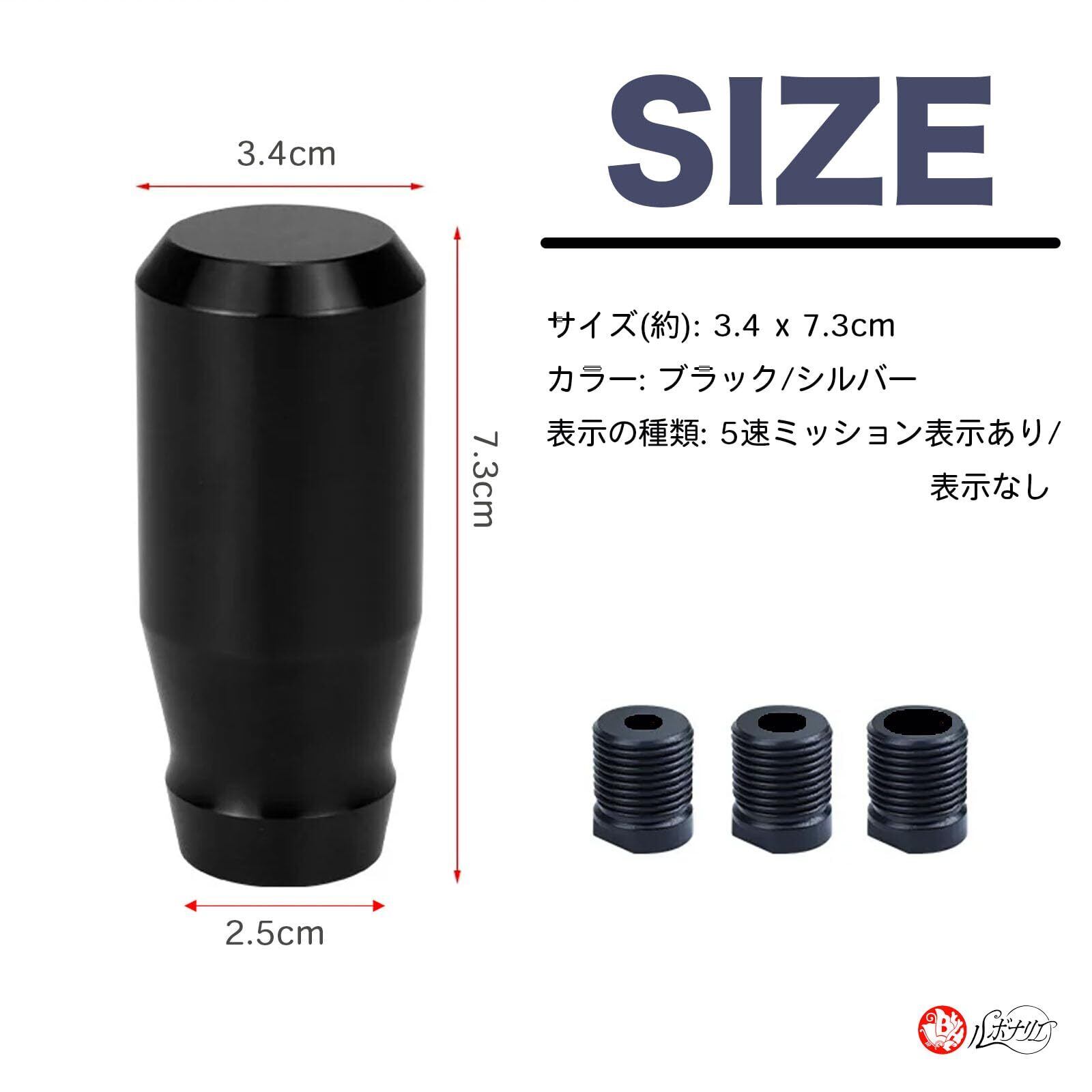 耐久性と軽量性を兼ね備えた高品質アルミニウムを使用したシフトノブです。ブラックとシルバー、5速ミッション表示ありと表示なしの4タイプをご用意いたしましたので、お好み合わせてお選びください。
