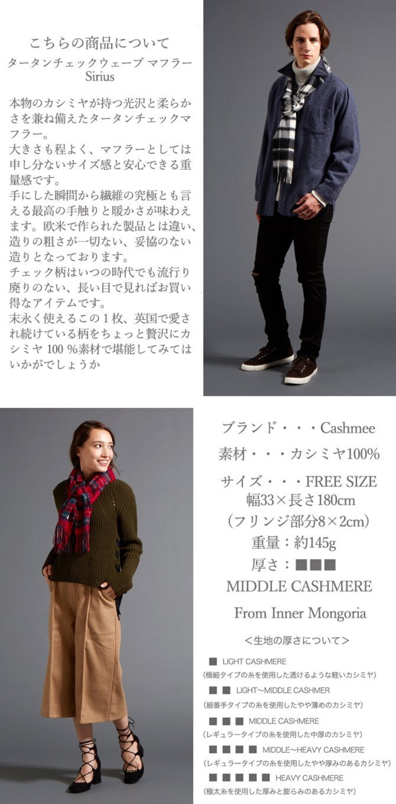 【特価セール】[Cashmee] カシミヤ 100% カシミア タータンチェック ウェーブ マフラー/Sirius 11color メンズ レディース