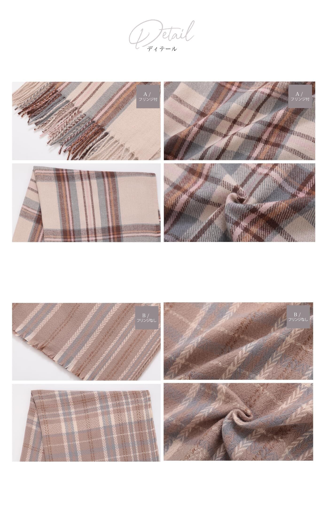【秋冬にぴったり!大判チェックストール】 このストールは、大判サイズでふんわりとしたボリューム感が魅力。寒い季節にぴったりの防寒アイテムで、首元をしっかりと温めます。チェック柄がトレンド感をプラスし、シンプルなコーディネートに華やかさを添えます。